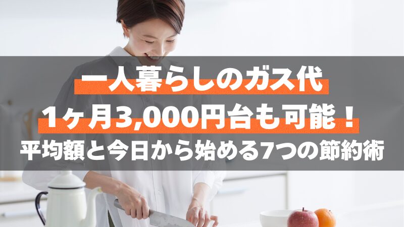 一人暮らしのガス代は、都市ガスで月平均3,000円〜4,000円、プロパンガスなら5,000円〜7,000円が相場です。しかし、この金額を大きく下回ることも十分可能なのです。